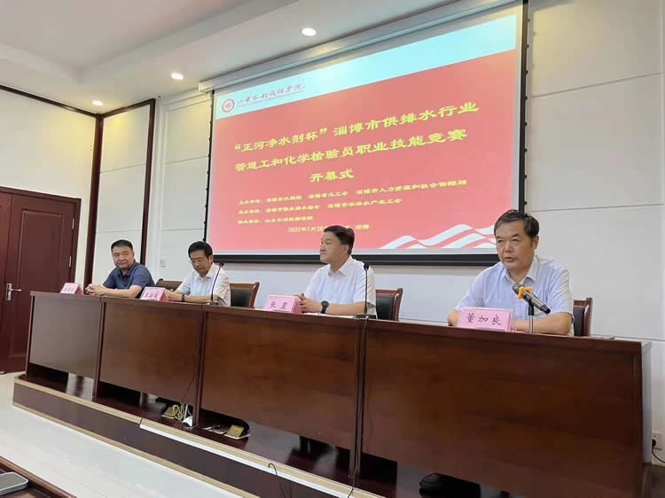 本竞赛于7月28日上午8:30在山东水利技师学院培训公寓多媒体教室举行开幕式。淄博市水利局党组成员、副局长张罡;淄博市总工会四级调研员、市农林水产业工会主任王海波;山东水利技师学院党委委员、副院长董加良;淄博市供水排水协会会长陈曙明出席。